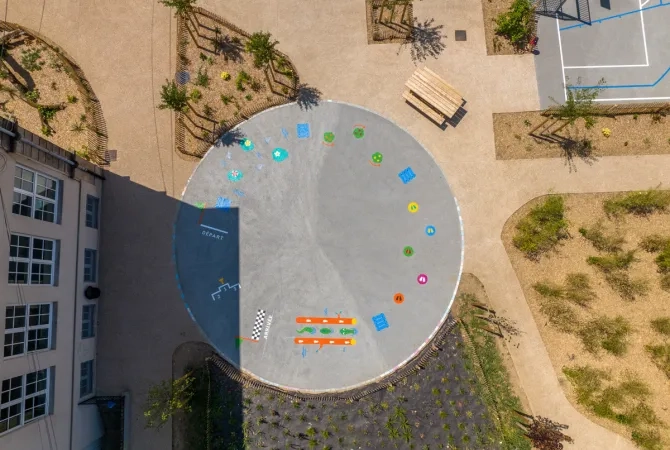 En 2023, la municipalité de Thionville a lancé un projet ambitieux de réhabilitation de la cour de l’école élémentaire Raymond-Poincaré. Couvrant une surface de 2 000 m², celui-ci vise à remplacer l’enrobé existant par des solutions plus durables et éco-logiques, notamment le béton drainant, dans le cadre de la résilience urbaine.